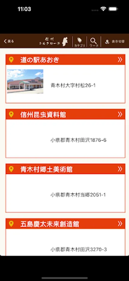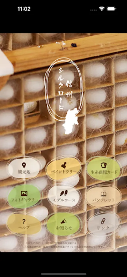 This is an app that summarizes model courses and sightseeing spots for the "Shinshu Silk Corridor," a travel product that combines Shinshu's silk-related facilities and other genres of tourism resources.