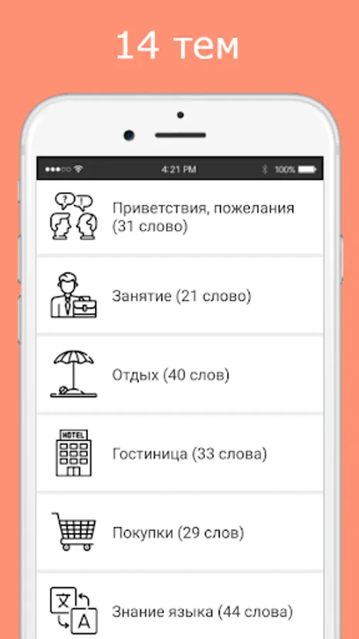 The application will allow you to take the first step towards learning the language, to interest you, and then it is up to you to decide whether to limit yourself only to colloquial phrases in Russian, or go further, studying grammar, vocabulary and syntax.