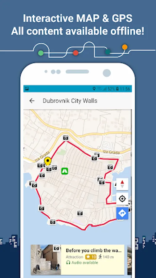 Once you download Dubrovnik guide, ALL CONTENT (audio stories, maps & images) will be stored on your device. NO INTERNET CONNECTION IS REQUIRED while you walk through the city.