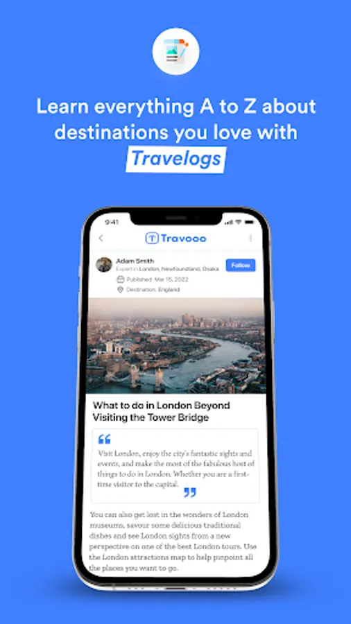 • Create Travelogs, which are highly customizable pieces of information designed to share valuable information