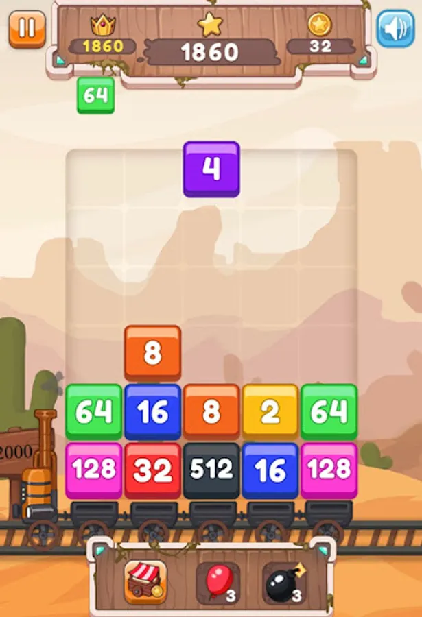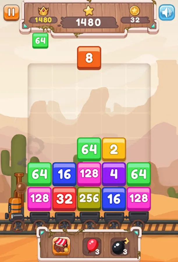 2048 zeka oyununda, tren yolculuğu yaparken blokları, en yüksek sayıya ulaştır ve keyifli dakikalar geçir.