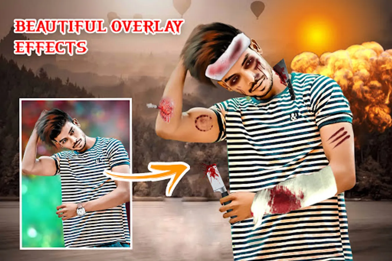 The Best part is That Our Wound Photo Editor Is To Set Fight Sticker On Your Body Photos And Make Your Looks Scary, isn’t it Cool? Fight Photo Montage Is A Photo Editor App That Offers You A Variety Of Fight Face To Add To Your Photos And Give A Virtual Makeover To Your Face In A Second And you can Set Those Edited Images As profile Pictures of your Social Media Handles.