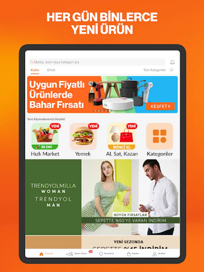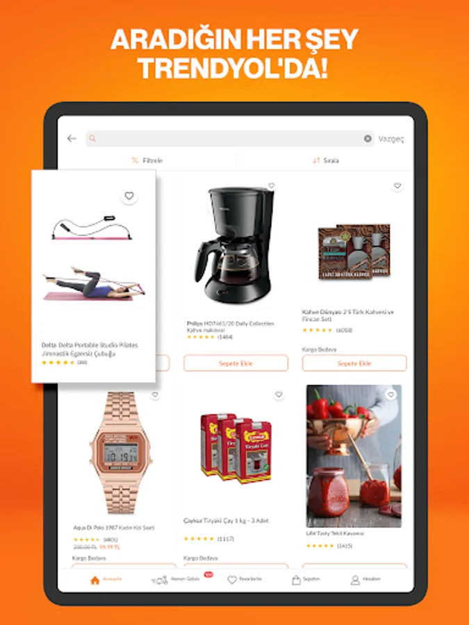 Download Trendyol mobile app, Koton, Mango, Samsung, Adidas, Nike, Mavi, Pull&Bear, Bershka, Hotiç, HP, Sony, Oral-B, Microsoft, Siemens, Continental, Canon, Xiaomi, Oppo, Apple, iPhone, Huawei, Lipton, Barbie, Bellona, Prima, Converse, Levis, Vakko, Judge, Casio, LG, Bosch, Arzum, Karaca, Tefal, Phillips, JBL, Baseus, Demirdöküm, L'Oreal, Avon, MAC, Pubg, Blistex, Don't miss out on special discounts and campaign opportunities for your favorite brands such as Migros Virtual Market and Gucci!