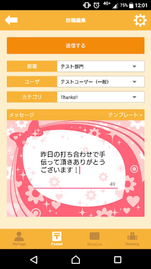 Until now had not transmitted, an application for each other convey the feeling that trivial "thank you". Of less than 75 characters, precisely because it handy message, you can each other tell the honest feelings of gratitude and cheers for good work was feeling everyday. By leveraging the notification function, also message to the fellow that is less involved usually - it will also be the chance to send di.
