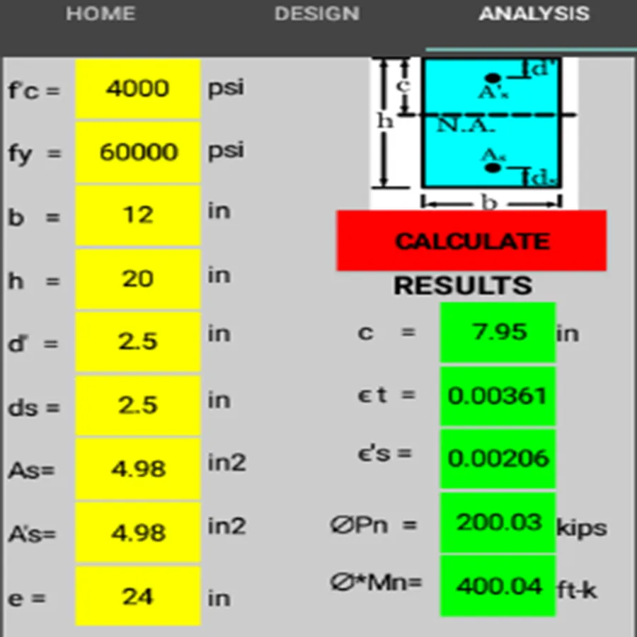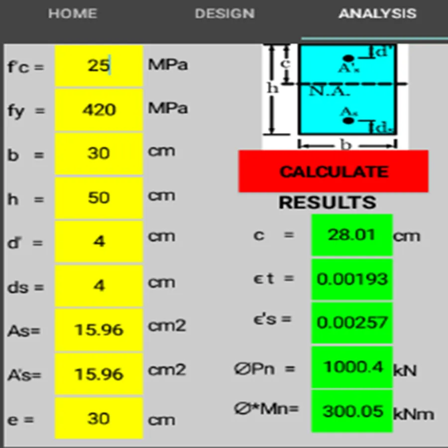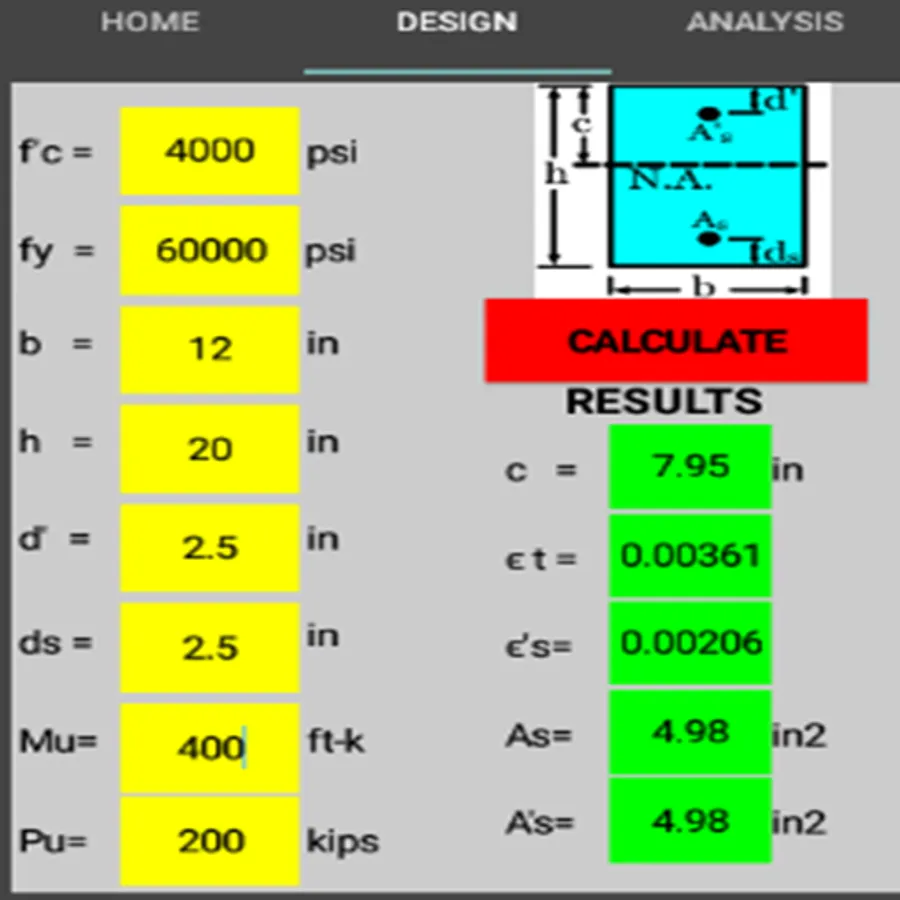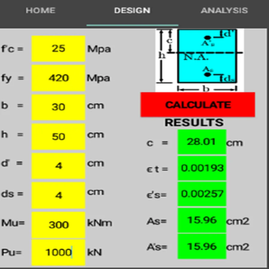 This application calculate the steel areas
