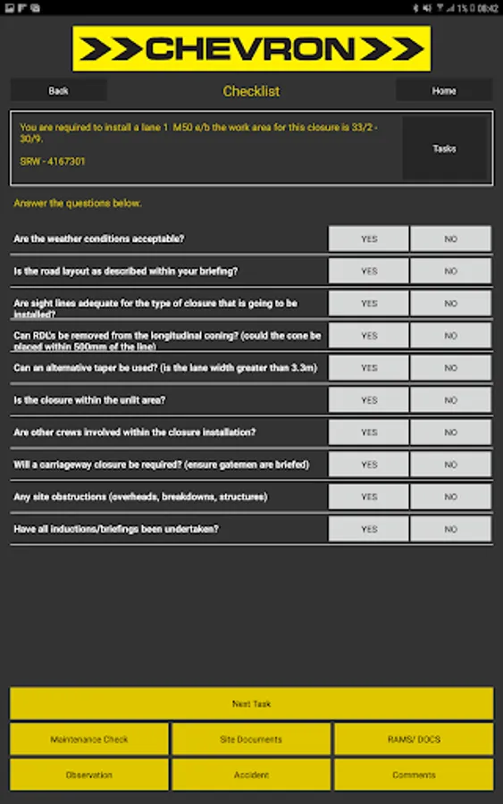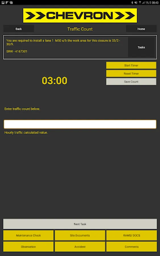Chevron Workmate app is an onsite application that captures data undertaken within a traffic management environment.