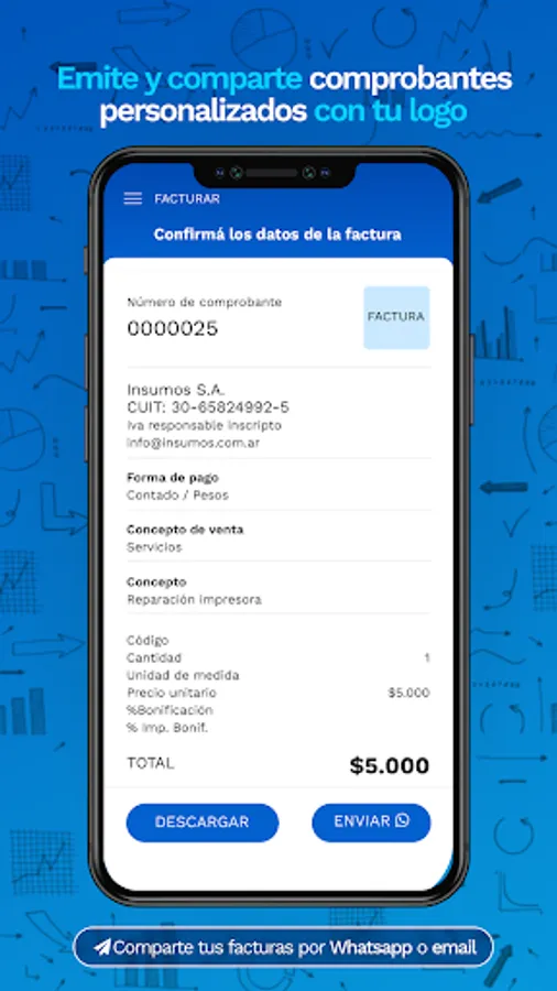 Biller: Issue and share personalized receipts with your logo, sending them instantly to your clients by WhatsApp or Email.