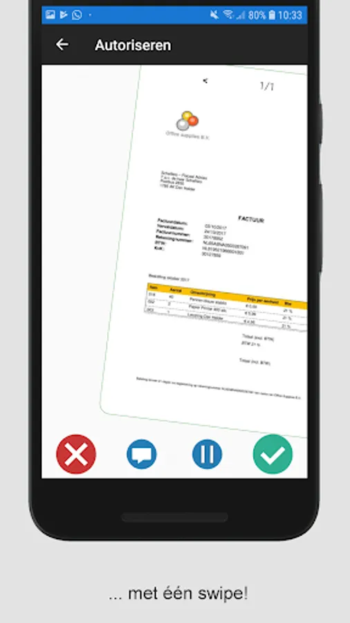 With the TriFact365 app you can easily upload on-the-go receipts. From now on the approval and rejection of receipts and invoices is done with one swipe. Enjoy the benefits of the TriFact365 application in combination with the convenience of your smartphone.