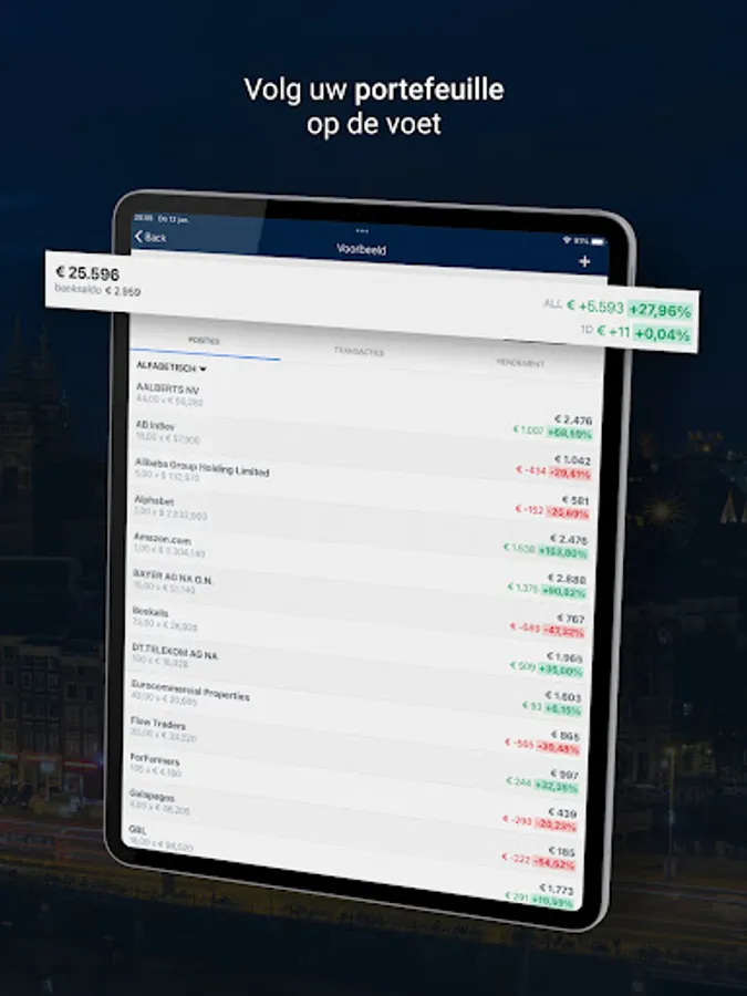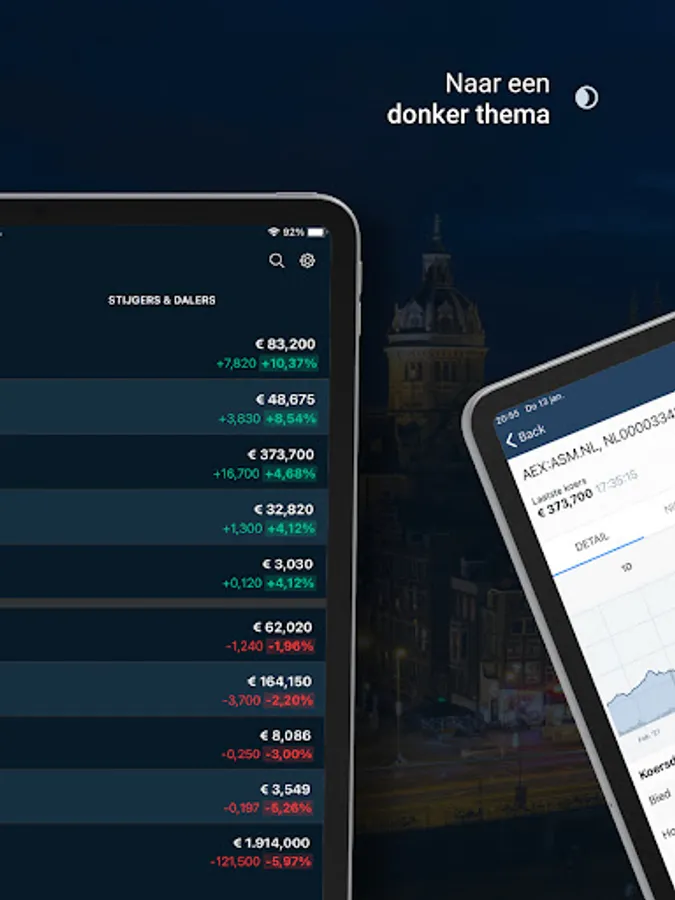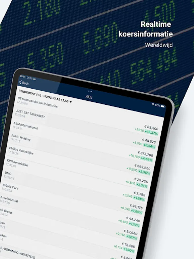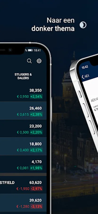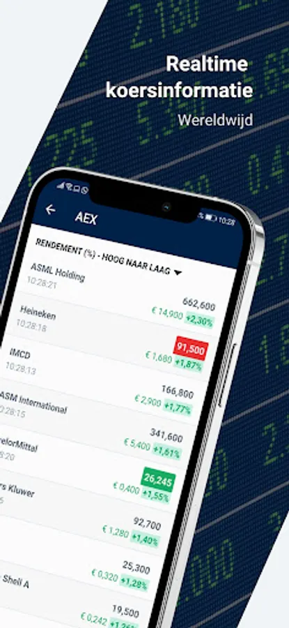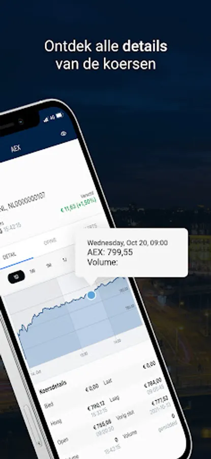 The IEX app offers the most extensive range of free price information in the Netherlands. You can follow the current positions of Dutch indices such as the AEX, AMX and AScX in real time, as well as the major European, American and Asian indices and stock exchanges. Of course, cryptos, commodities, interest rates, currencies, trackers and investment funds are also included.