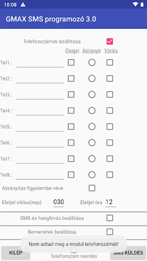 It compiles the SMS required to configure the GMAX module and sends it to the SMS application of the phone to make the module setup much easier. When setting, multiple SMS may be required because the SMS can be 160 characters long, in which case the messages must be sent one at a time. The SMS commands are the same as the commands in the description attached to the module.