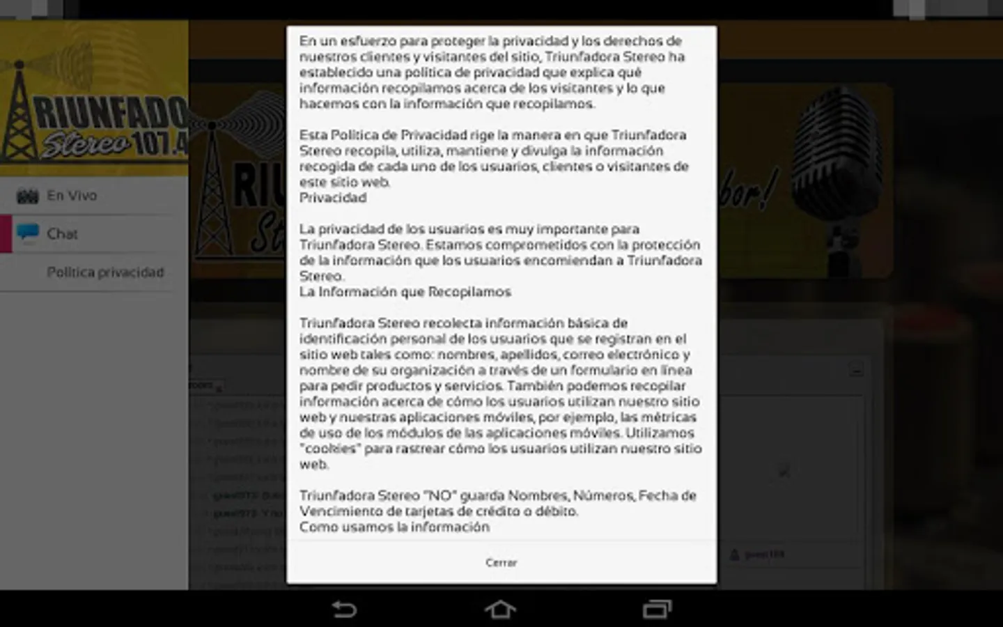 La Triunfadora Stereo 107.4 F.M, we will be characterized as a community broadcaster committed to the community, thus promoting educational, cultural and community participation activities to contribute to the strengthening of community organizations.