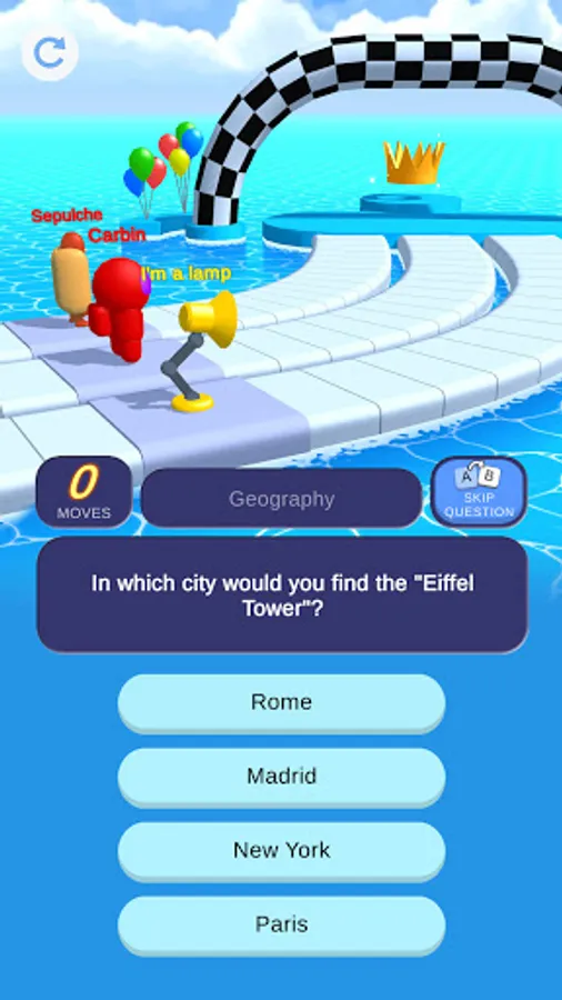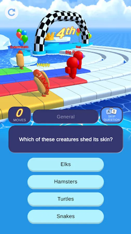 Answer questions, get points and beat your opponents! Be the first to get the crown! You will need to strain your brain to be the first. Unlock unique skins, unlock new locations and always be the first.