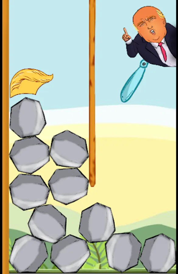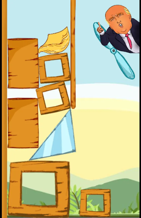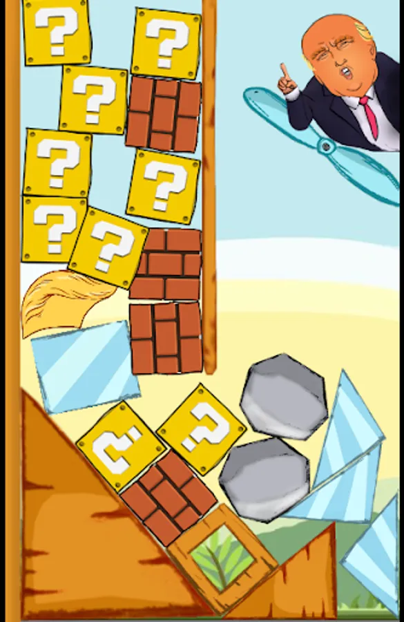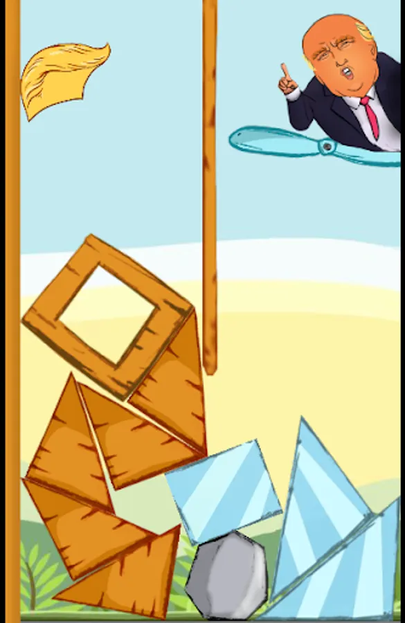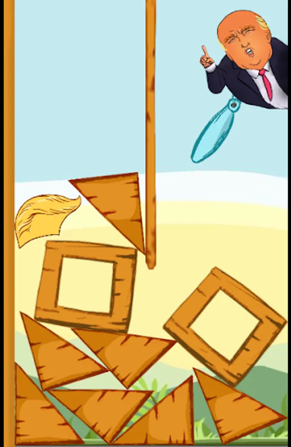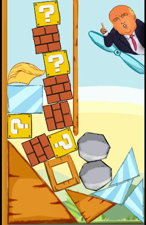 In this game, you must carry Donald Trump's wig to his bald head. You must help him by taking his hair, solving the obstacles' puzzle with boxes, walls, glasses and woods.