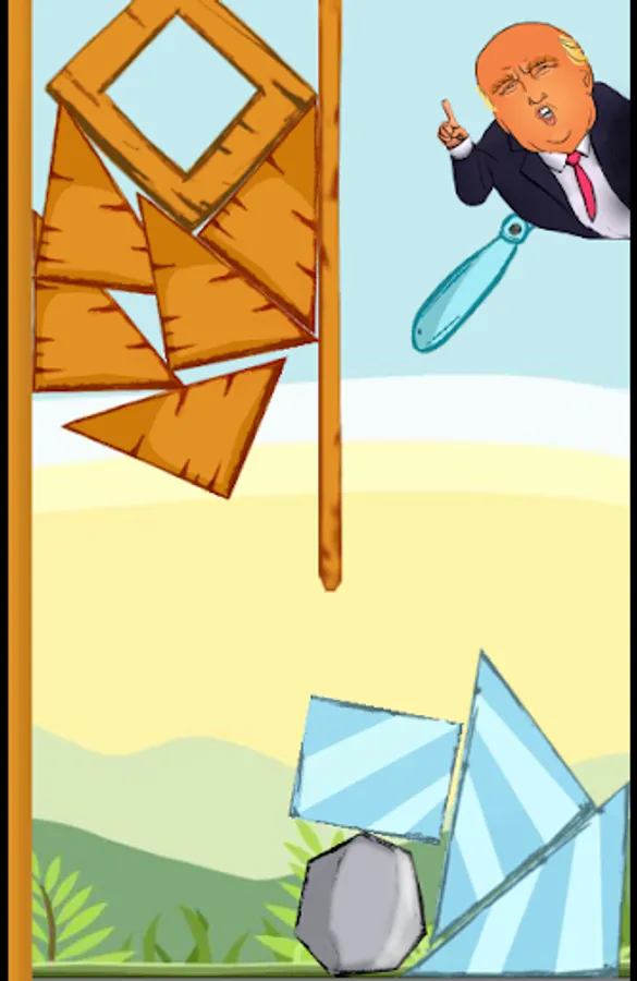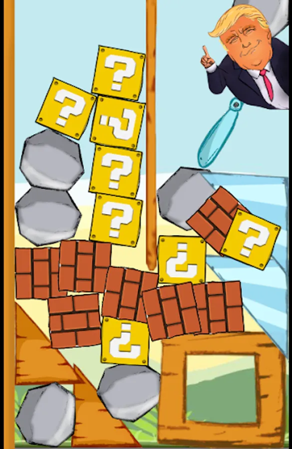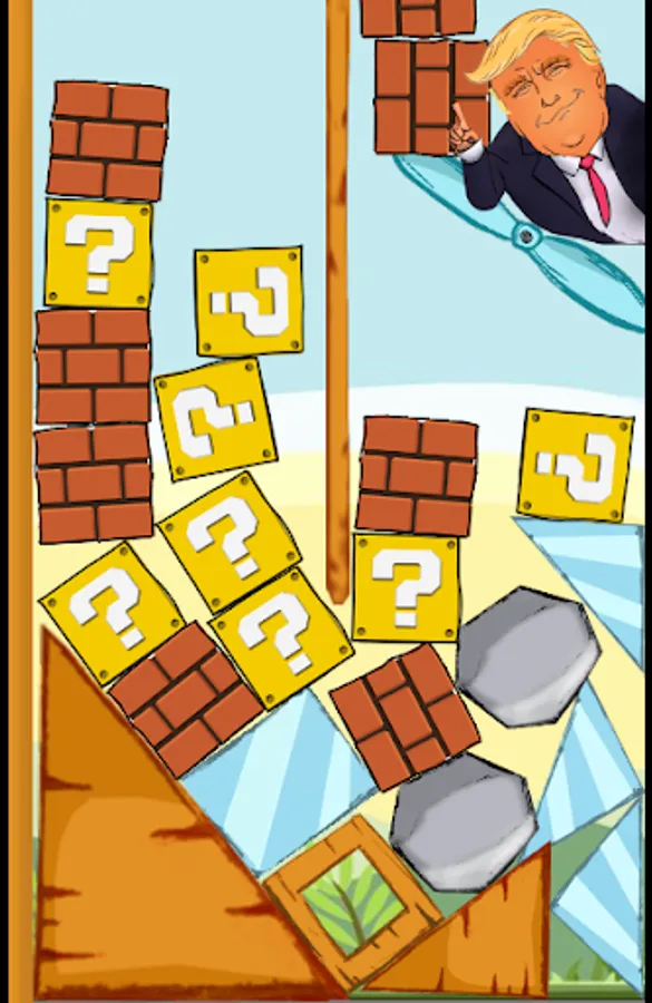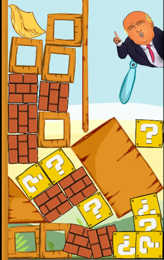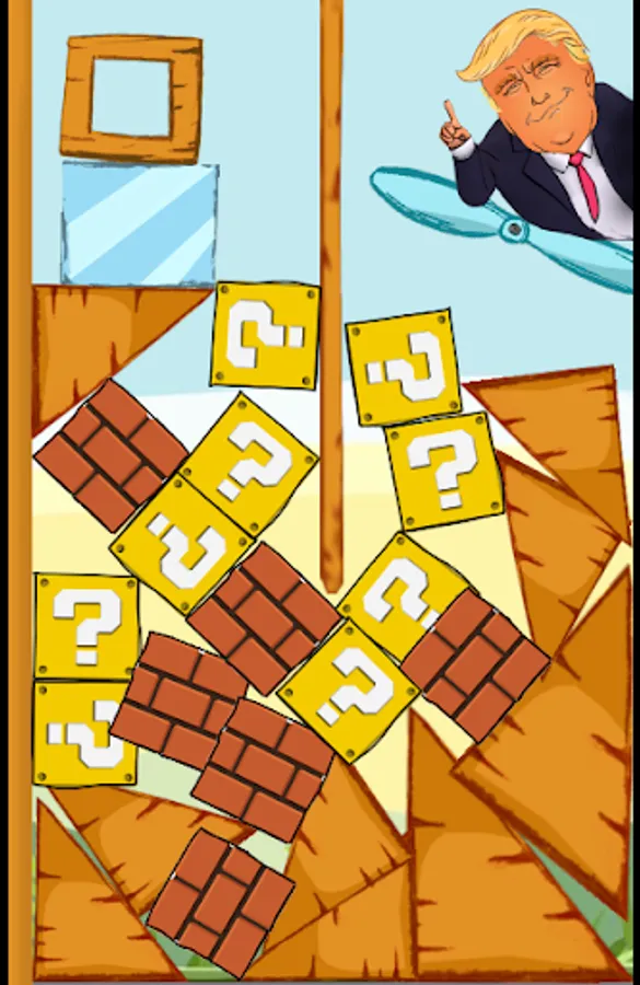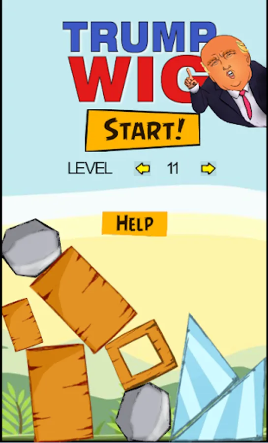 In this game, you must carry Donald Trump's wig to his bald head. You must help him by taking his hair, solving the obstacles' puzzle with boxes, walls, glasses and woods.