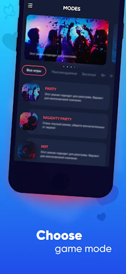 Before starting Truth or dare you can choose a category in Settings menu and levels in Game screen.