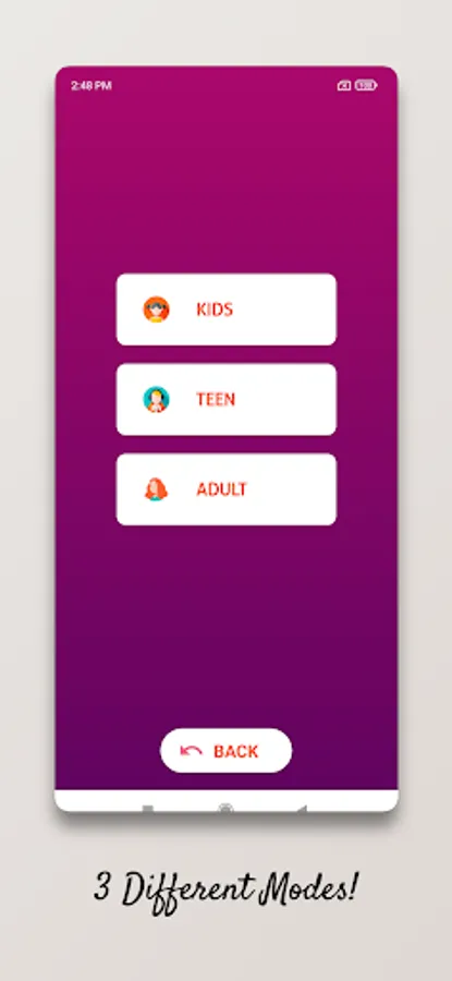 ✔ 3 different game modes - Kids, Teens, and Adult.