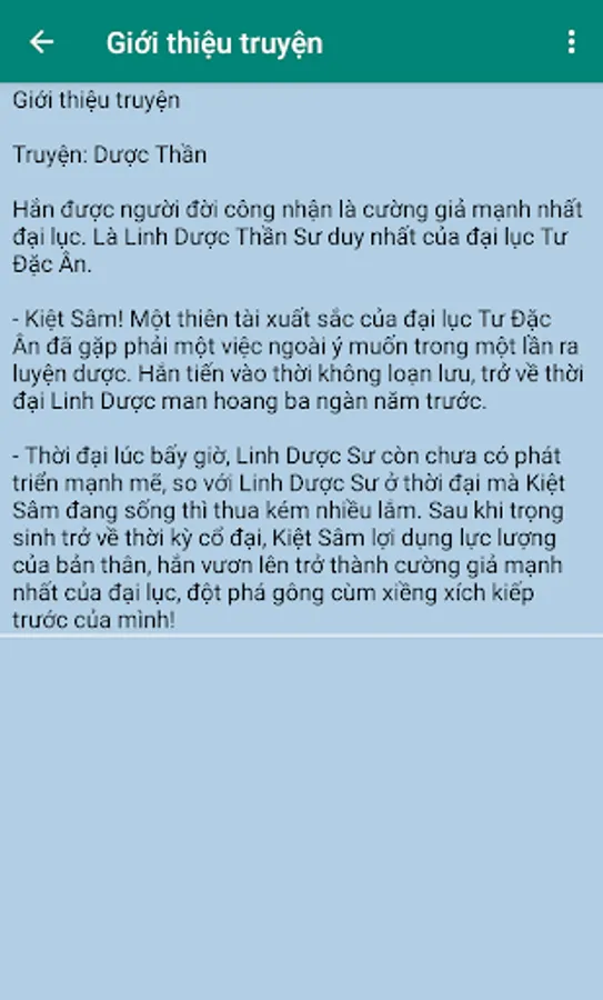 Dược thần là truyện tiên hiệp hay thuộc thể loại dị giới. Truyện cùng tác giả: Võ Đạo Đan Tôn, Huyền Thiên Hồn Tôn