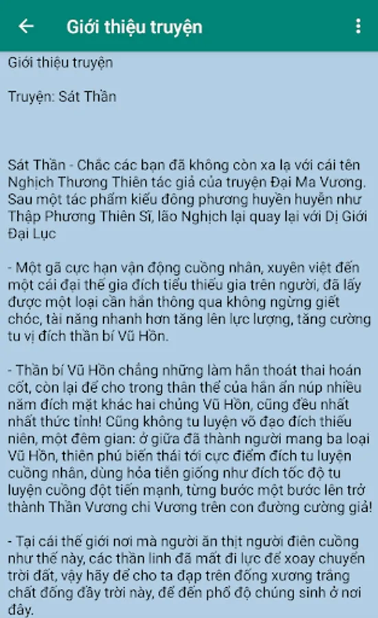 Tính năng Ứng dụng đọc truyện Sát thần: