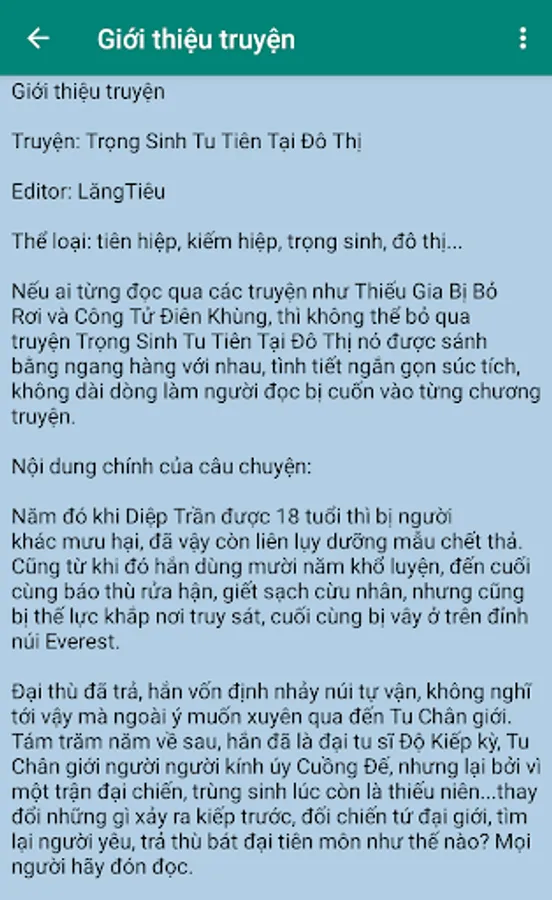 Ứng dụng đọc truyện Trọng Sinh Tu Tiên Tại Đô Thị offline: