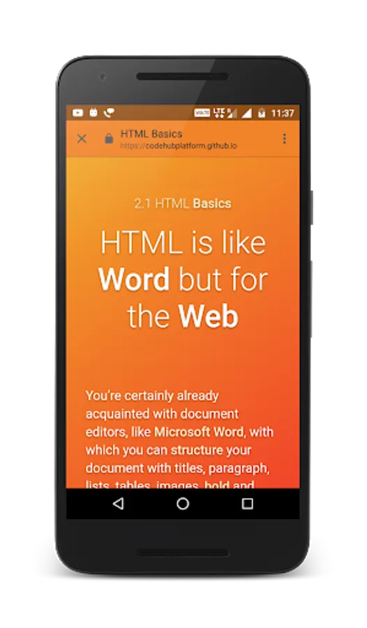 Now in Code Hub you can learn HTML and CSS. It's short (just as long as a 50 page book), simple (for everyone: beginners, designers, developers), and free (as in 'free beer' and 'free speech'). It consists of 50 lessons across 4 chapters, covering the Web, HTML5, CSS3. adding more courses soon.