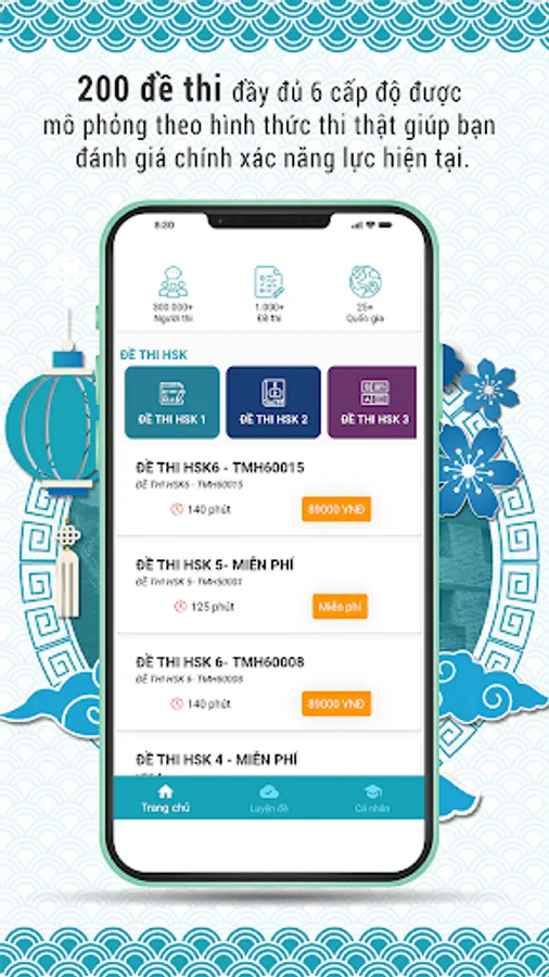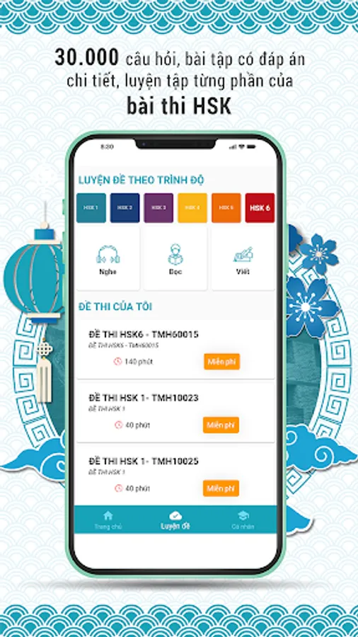 Up to now, TryHSK has developed both online versions of Website and App (Ios, Anroid) with exams system and review materials spanning from HSK1 to HSK6, fully meeting the needs of learning and testing. Chinese level of each person. With the "time control" feature, students who take mock exams will experience the feeling of doing a real exam. Moreover, TryHSK owns a rich bank of questions, creating a matrix of HSK exam questions stimulating students' learning spirit and self-challenges.