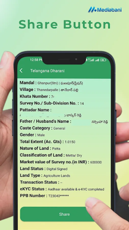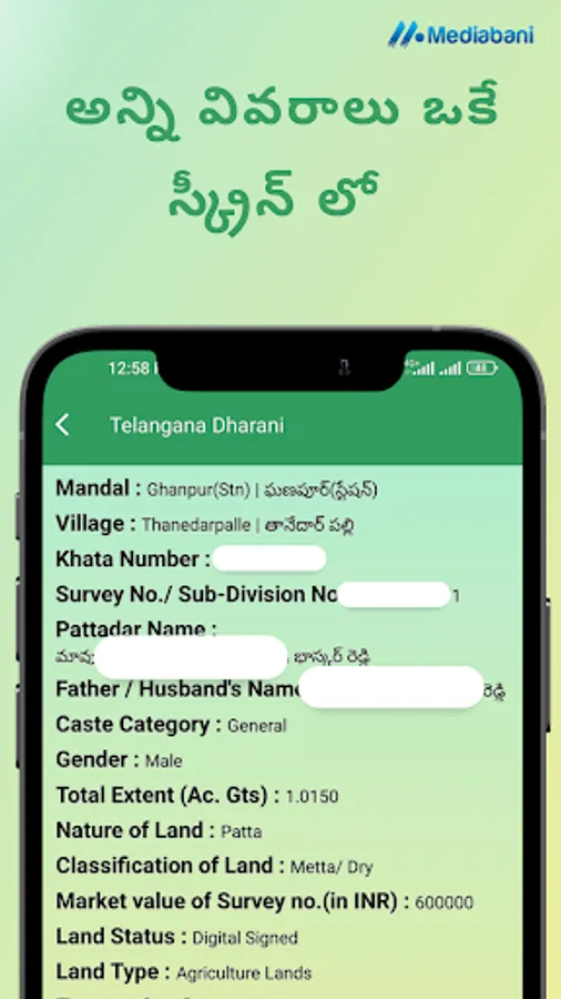 Mediabani doe's not take any resposibility for Errors in data or Mistakes in data it is show as it is show in pulblic website dharani portal.