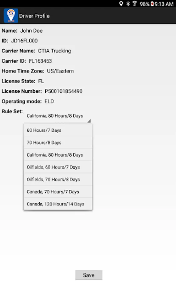 Compliant app to record driver duty status and meet the following regulations:
