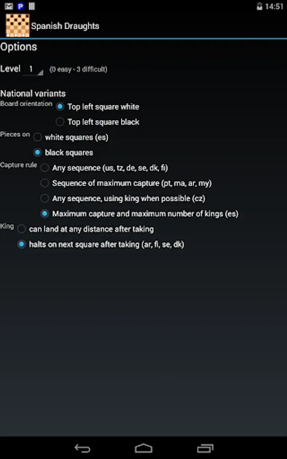 Via settings it is possible to modify some of the rules according to the country variants of this game.