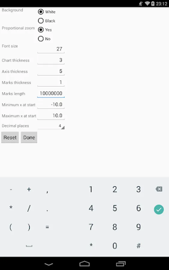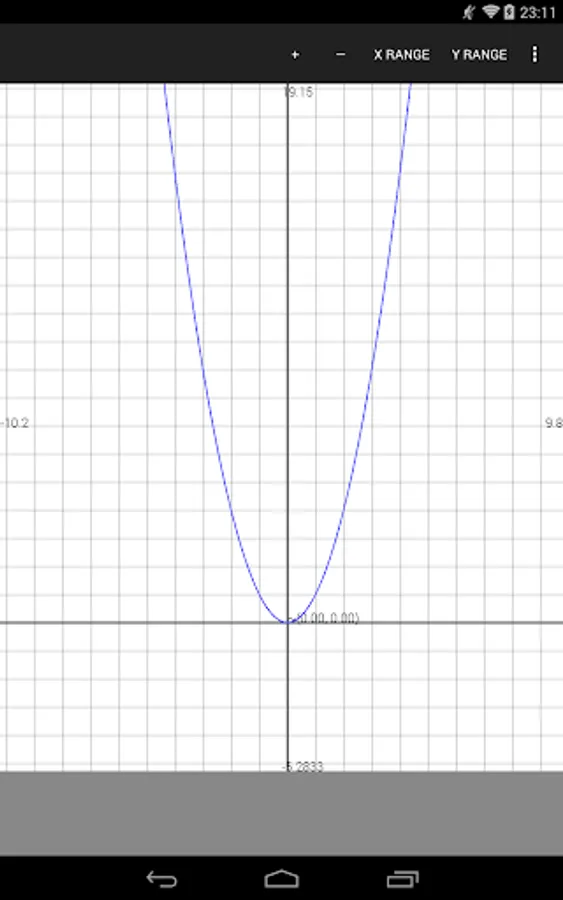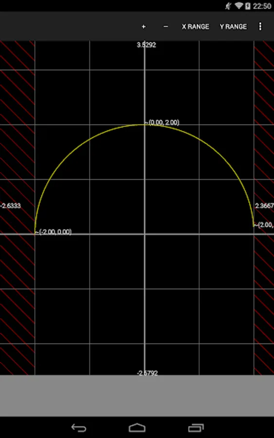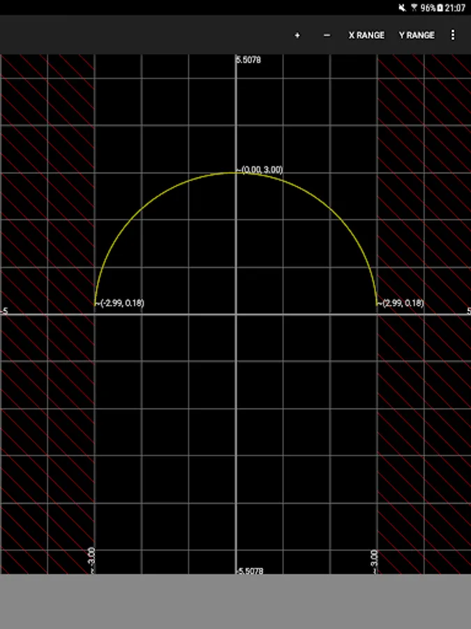 It shows approximate values for x,y instersections, definition area, minimum and maximum (can be toggled)
