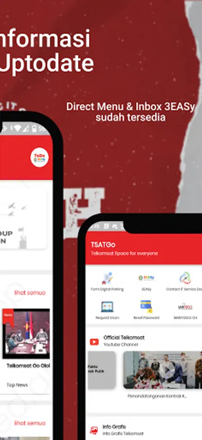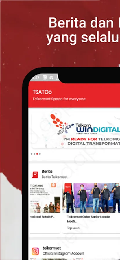 The TSatGo application is an application that aims to meet information needs related to employee attendance activities and Telkomsat internal information. This application has several features including: mobile presence, daily employee attendance recap, monthly attendance recap and news and information portals about Telkomsat (IG, YouTube, Web Community). In the mobile presence menu, this feature is provided so that users of this application can perform outside office attendance with certain needs such as meetings and external services. In the employee daily attendance recap menu, this feature is used to check the attendance data of all employees today and can check regional and attendance schedules for previous days. In the monthly attendance recap menu, this feature is used to check the personal monthly attendance activity of the user who is currently logged in and displays the monthly data of the logged-in employee. And a feature on the home page that contains information portals and news related to Telkomsat.