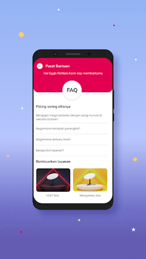 STARSPACE is a mobile-based application that can provide information related to low-orbit satellite-based internet access service products (VSAT Star and Mangoesky Star), to monitoring order status (from receiving orders to online) and node status.