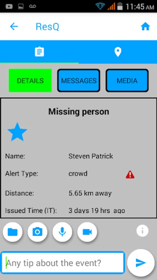 Crowd notification / sourcing is also included: missing person alerts and any crime incidents around your current location (optional: requires background location information to be sent periodically). If you have any information on a given incident you can send messages, pictures or video to our dispatchers to help with the incident.
