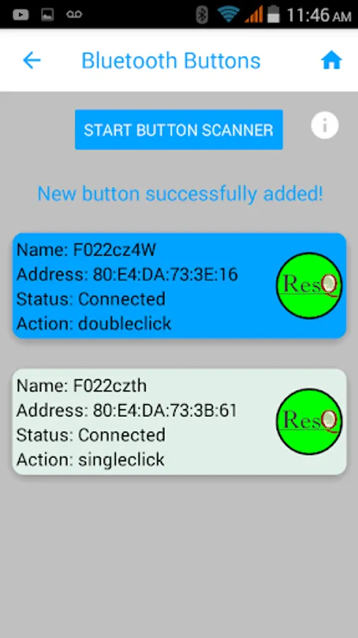 The ResQ application provides rapid location emergency response services at the press of a button. Emergency Response can be activated either with a separate dedicated Bluetooth button (which we provide) or via the notification panel.