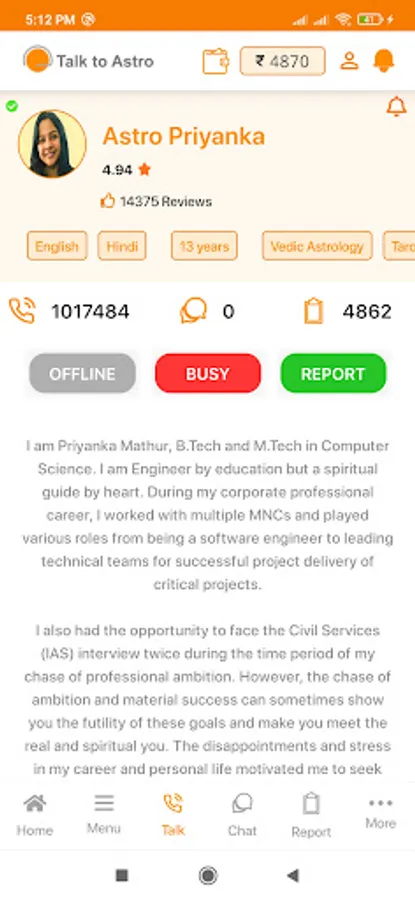 Download talktoastro: online astrologer – the best astrology app to consult India’s best astrologers. Choose an Astro experts, tarot card reader, numerologist or psychic reader to know about problems related to marriage, relationship, career or wealth. We offer the best price among all astrologer consultation platform. We also offer the money back if you are not satisfied with the readings of the astrologer.