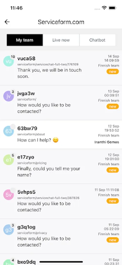 Chat live with your website visitors using Serviceform live chat tools. Get notified with push notifications, and jump to chat with any visitor.