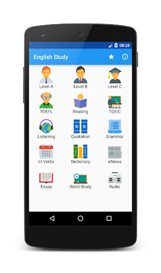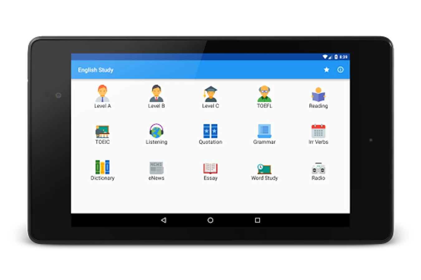 - Test your knowledge about english with many levels: A,B,C, TOEFL, TOEIC