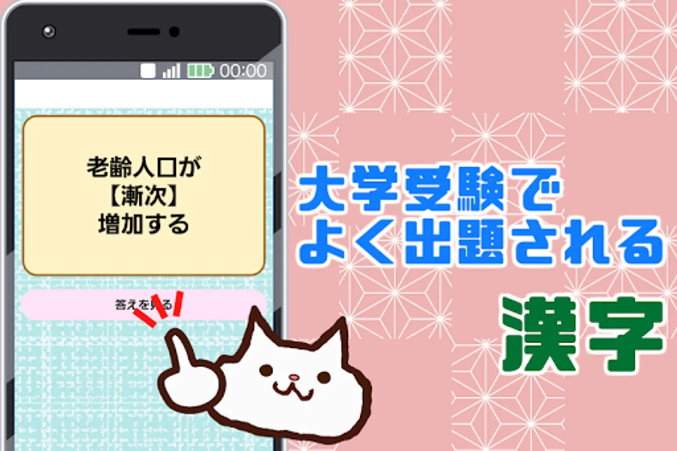 大学受験生のための学習アプリです。ここだけは押さえておきたい漢字を厳選して集録しております。