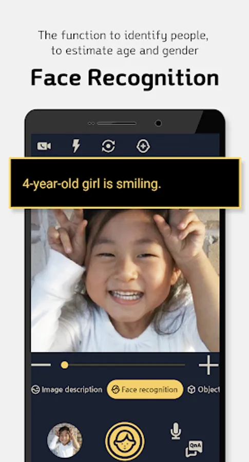 Face Recognition- It recognizes a person photographed with a camera and tells the person's age and gender.
