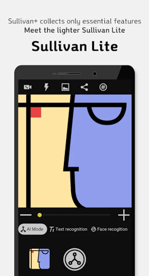 Sullivan Lite provides a lighter and more convenient use by collecting the most used functions among the various functions provided in the existing Sullivan Plus app. It is implemented with the basic camera UI/UX familiar to Android users, so it can be used easily, and as it is light, it can be used quickly without delay even on low-specification devices. In addition, Sullivan Lite has been supported for those who have wanted to use Sullivan Plus on a large screen such as a tablet, so you can enjoy a convenient life with Sullivan Lite on a wider variety of devices.