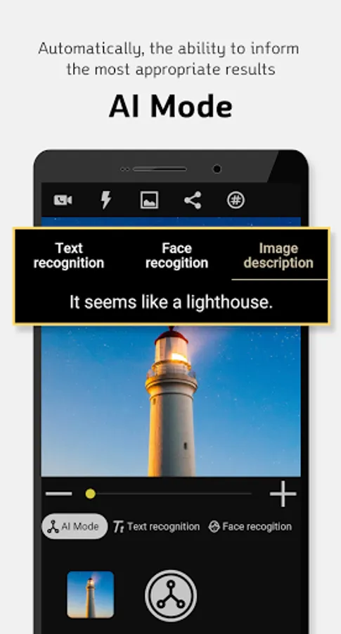 AI mode-AI automatically finds the best results that fit the taken photos.