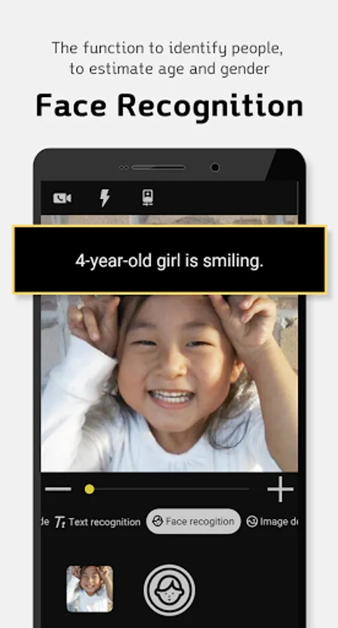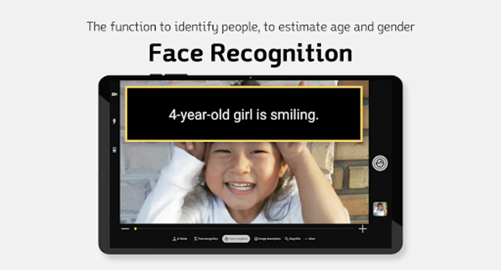 Face Recognition- It recognizes a person photographed with a camera and tells the person's age and gender.
