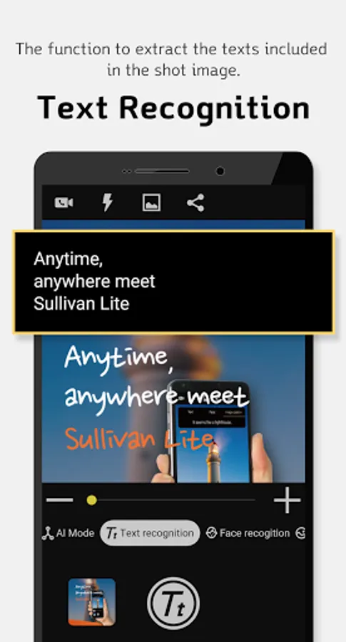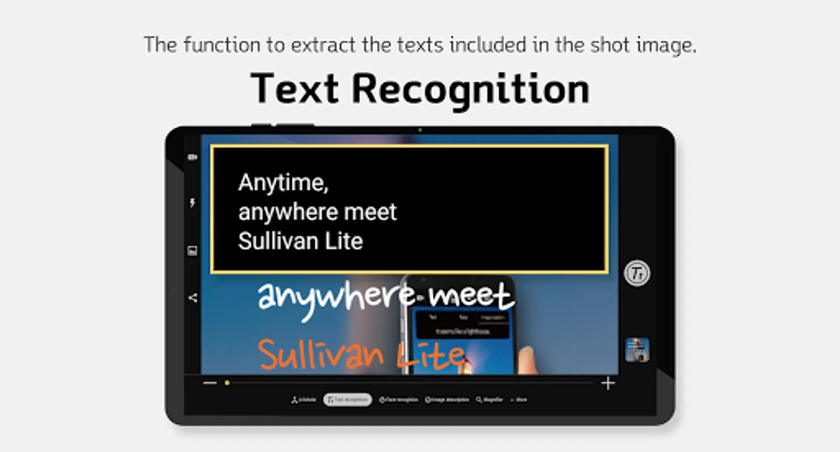 Sullivan Lite is a visual-aid app provided by TUAT Corp. to enhance the accessibility of the visually impaired and low vision users and informs users who need visual aids about information perceived via the smartphone camera.