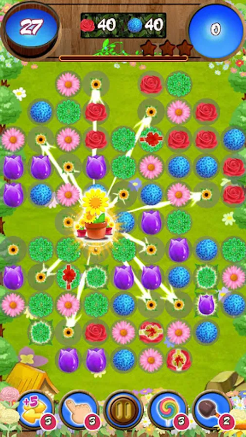 Link 3 or more candy buds of the same color to blast them. Watch as you set off an epic chain reaction of blooming flowers candies.