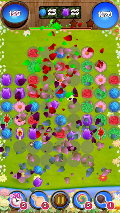- Connect a flowers in a line with 2 or more of the same colors to get a petal blast