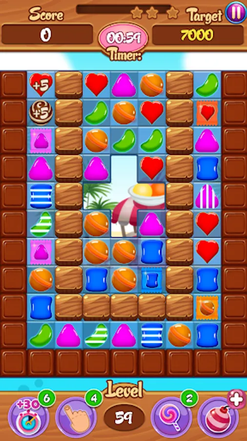 Match three or more same candy to make them boom, crush them! Reach the target score or collect candy to move to the next level.