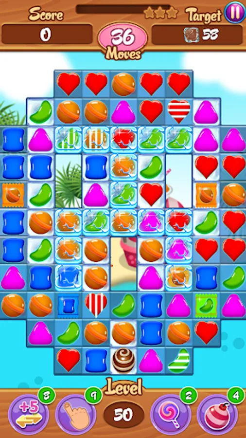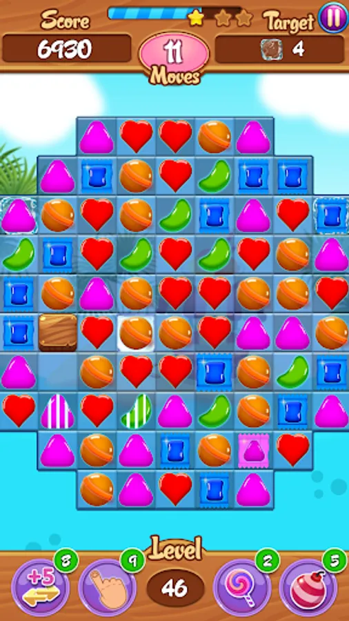 - Smash 4 candy in a line to create sugar blast line or jelly boom