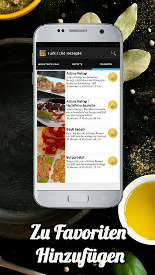 For the special occasion, our are particularly suitable: Bulgur salad, flatbread from the pan, Turkish poppy seed cake not only looks great, but also ensures the tasteful of any feast. But surely there's nothing wrong with just making our Turkish recipes completely on their own. Among other things, we have selected the best Turkish pogaca with cheese filling, Turkish pork recipe, Turkish chocolate cake, Börek on the fast, Stuffed vine leaves à la Turca. Thoroughly tested in this directory Turkish recipes for free and offline, we have selected only the best and tastiest dishes from around the world. We are constantly running new tests and testing them to only offer you proven cooking methods. Our app works without an Internet connection, so you can always access your favorite recipes.