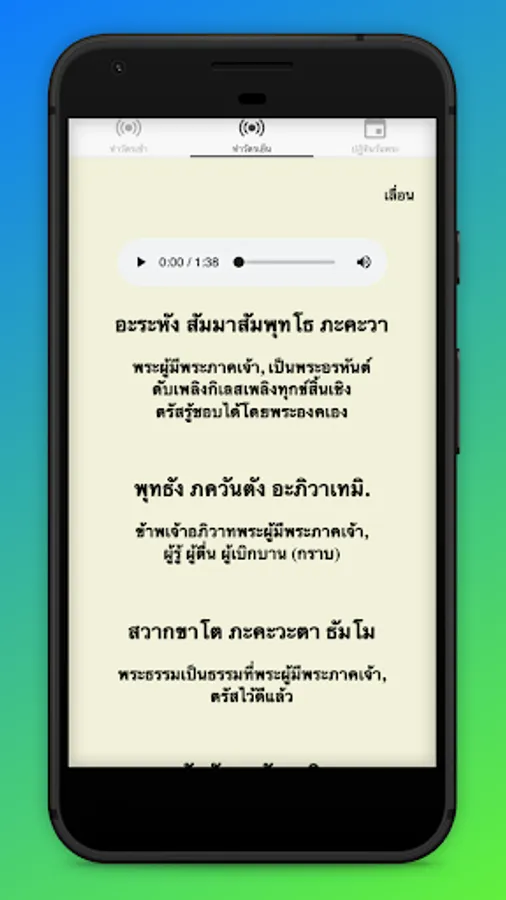 Conducting regularly, will benefit in many ways. Such as creating happiness Like being in the presence of the Lord Buddha in front of him Is a form of meditation Causing the heart to concentrate steadily