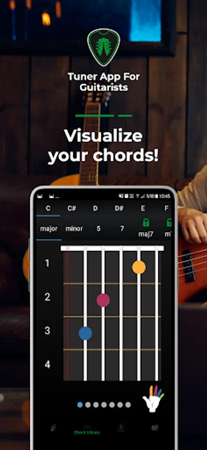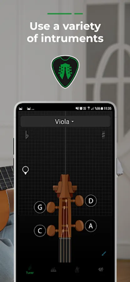 • Pluck a string and let GuitarTuna guide you to the perfect pitch.
