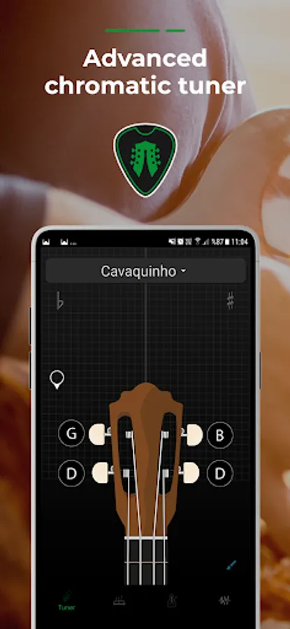 • Chromatic tuner: tune to any note on the chromatic scale.